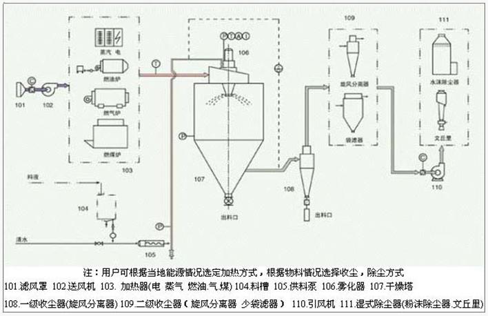 高速離心噴霧干燥機是液體成形工藝和干燥工業(yè)中廣泛應用的工藝。適用于從懸乳液、溶液、乳液和糊狀液體原料中生產粉狀、顆粒狀固體產品。因此,當成品的顆粒大小分布、殘留水份含量、堆積密度和顆粒形狀都符合精確的標準時,噴霧干燥機是十分理想的干燥工藝。